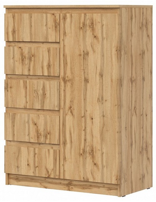 Ширина, см: 83. Высота, см: 114,3. Выступ, см: 43,3. Размер упаковки, (мм): 1170x430x85, 955x485x80. Вес (кг): 58. Компоненты, входящие в комплект: 1 дверца, 2 полки, 5 ящиков. Стиль: модерн. Страна-производитель: Россия. Объем (м3): 0.11. Количество секций для хранения: 5. Основной цвет: разноцветная. Материал фасада: ЛДСП Е1. Материал корпуса: ЛДСП Е1. Тип поверхности корпуса: матовый. Место размещения: Пол. Помещение: Гостиная, Кабинет, Прихожая, Спальня. Гарантия (месяц): 24. Основное помещение: Гостиная. Цвет корпуса: дуб вотан. Цвет фасада: дуб вотан.