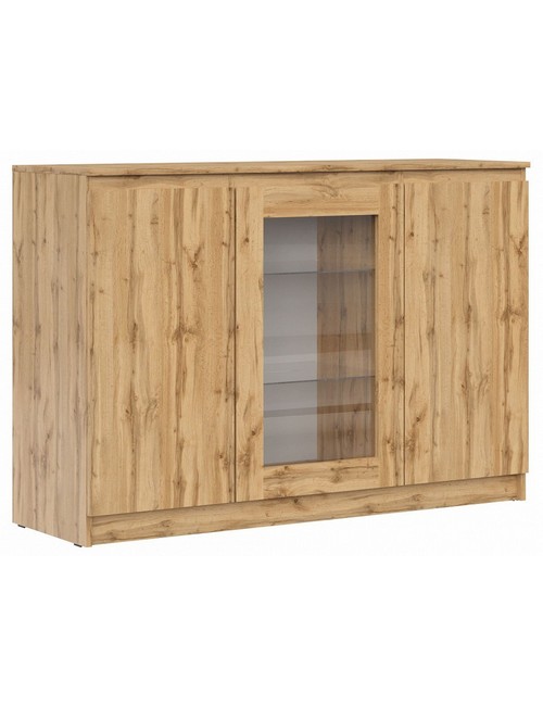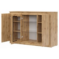 Ширина, см: 135. Высота, см: 93,3. Выступ, см: 43,3. Размер упаковки, (мм): 1400x485x95, 960x575x85. Вес (кг): 58. Компоненты, входящие в комплект: 3 дверцы, 6 полок. Стиль: модерн. Страна-производитель: Россия. Объем (м3): 0.11. Основной цвет: разноцветная. Материал фасада: ЛДСП Е1, стекло. Материал корпуса: ЛДСП Е1. Тип поверхности корпуса: матовый. Место размещения: Пол. Помещение: Гостиная,Кабинет. Гарантия (месяц): 24. Основное помещение: Гостиная. Цвет корпуса: дуб вотан. Цвет фасада: дуб вотан.