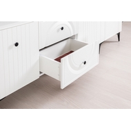 Особенности: ТВ-тумба Валенсия 16.45 оснащена двумя ящиками и двумя боковыми полками с распашными дверками. Корпус изготовлен из ЛДСП, который отличается высокой износостойкостью и устойчивостью к механическим повреждениям. Фасады выполнены из МДФ с геометричной фрезеровкой, который даёт развитый светотеневой рисунок. Ящики оснащены направляющими скрытого монтажа с доводчиками. Фиксирующие полкодержатели из металла. Петли фасадов оснащены доводчиками и черными ручками-кнопками. Можно компоновать с другими модулями из серии мебели Валенсия. Реальный цвет товара может отличаться от цвета товара на фотографии. Поставляется в разобранном виде.