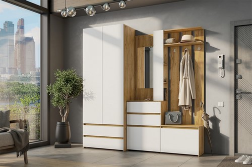 Особенности: Вешалка с зеркалом Некст 1, (дуб золотой/белый) оснащена скрытой фурнитурой, которая поставляется в комплекте, а также шариковыми направляющими.