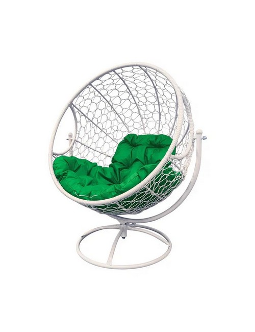 Вращающееся кресло с ротангом (белое с зеленой подушкой)