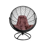 Вращающееся кресло с ротангом (черное с коричневой подушкой)