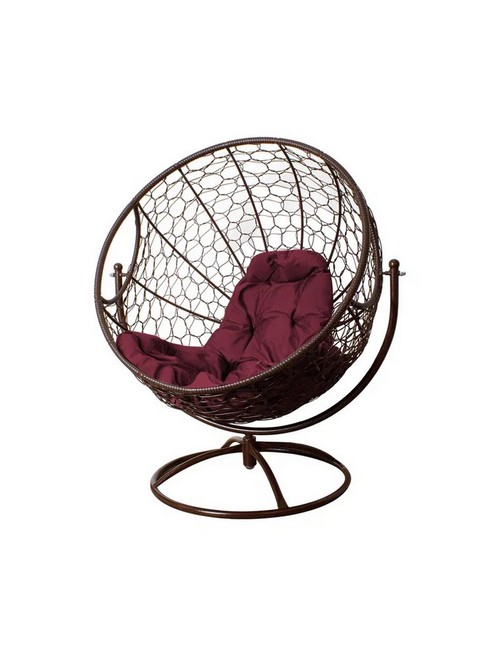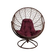 Вращающееся кресло с ротангом (коричневое с бордовой подушкой)