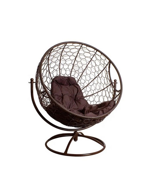 Вращающееся кресло с ротангом (коричневое с коричневой подушкой)