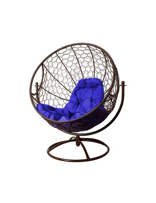 Вращающееся кресло с ротангом (коричневое с синей подушкой)