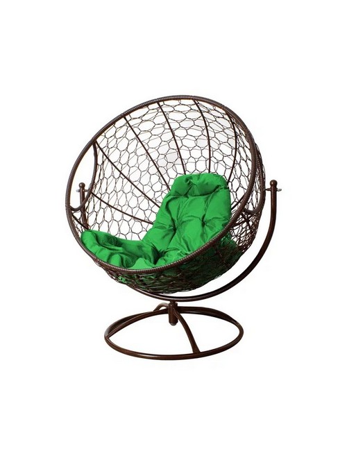 Вращающееся кресло с ротангом (коричневое с зеленой подушкой)