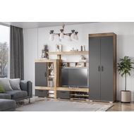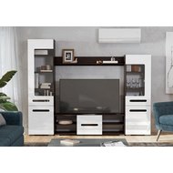 - Данная мебель в гостиную также дает эффект «заполнения» помещения. Комната больше не кажется пустой. Набор мебели органично вписывается по размеру стены и придает комнате завершенность. Кстати, вы можете найти в нашем каталоге и угловую стенку!